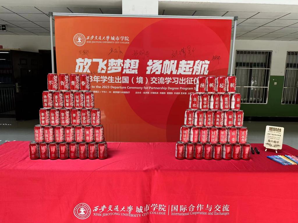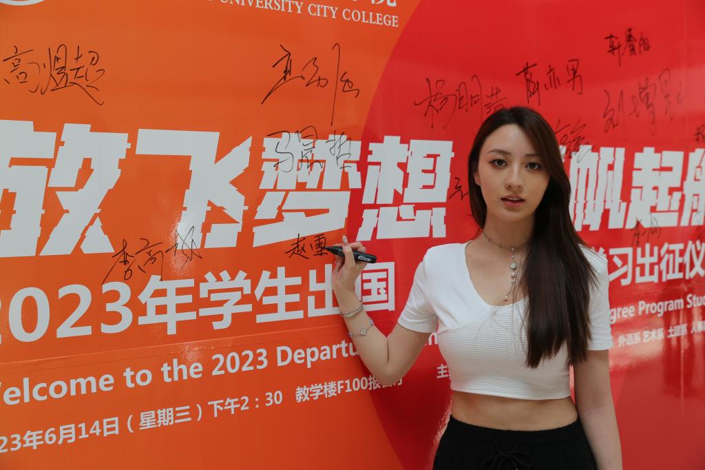在经济系金融国际2001班朱亮亮同学带领下,2023年出国(境)45名学生集体宣誓:坚定理想信念,厚植爱国情怀,继承和弘扬“留学报国”的光荣传统。外塑形象,内修素质,时刻展现中国学子的青春风采。求同存异,讲好中国故事,努力做好中外文化交流的桥梁。全力以赴、锤炼本领,为校争光,为国争荣,做勇于有梦、敢于逐梦、勤于圆梦的城院新青年!