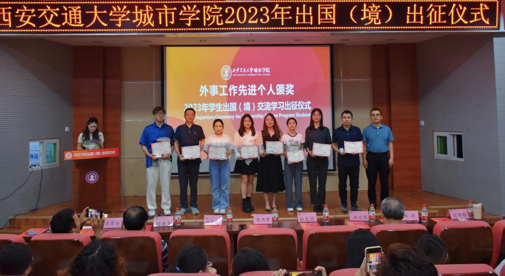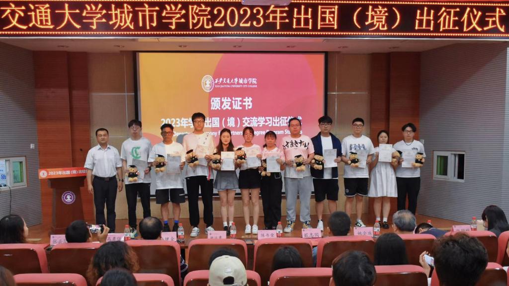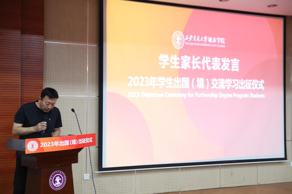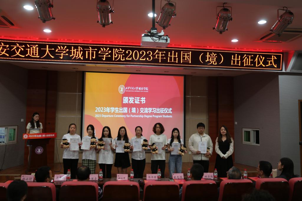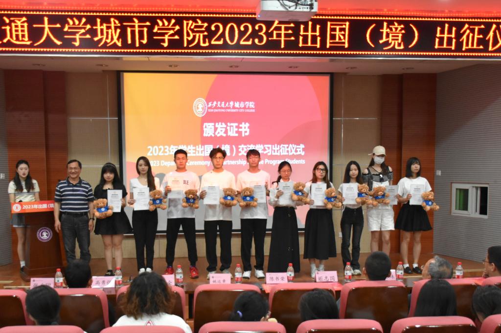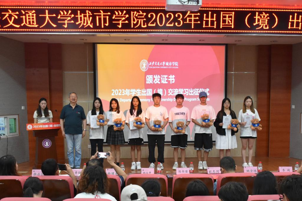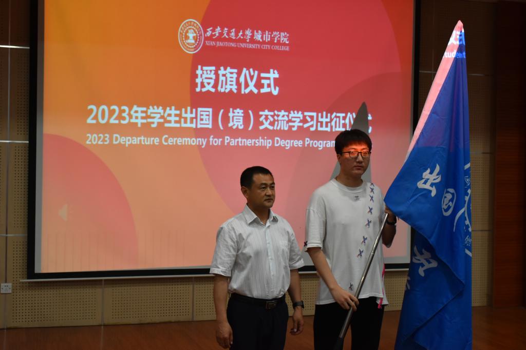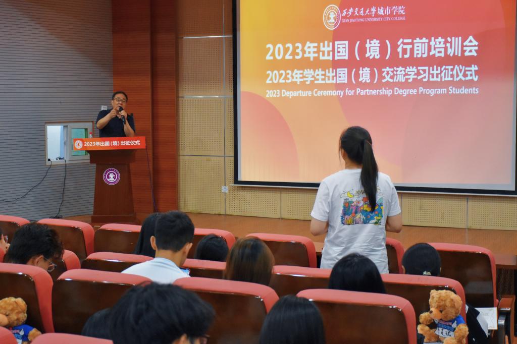 6月14日下午,威尼斯7798cc2023年学生出国(境)交流学习出征仪式在教学楼F100报告厅举行。威尼斯7798cc副院长陈书荣、陕西省留学服务中心姚运章、计算机系主任姚全珠、经济系副主任杨健全、人事服务中心主任姬志国和出国(境)项目相关系的老师出席活动。大会由金融国际2001班的杜思璇主持。