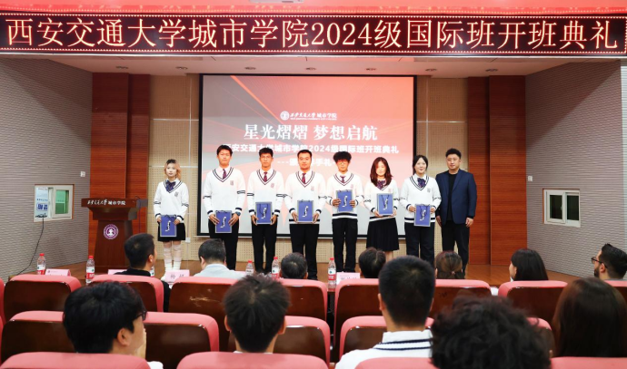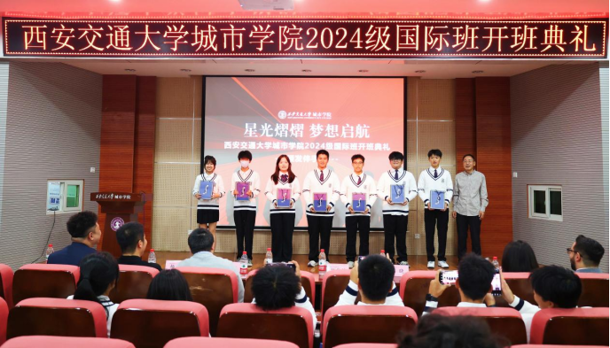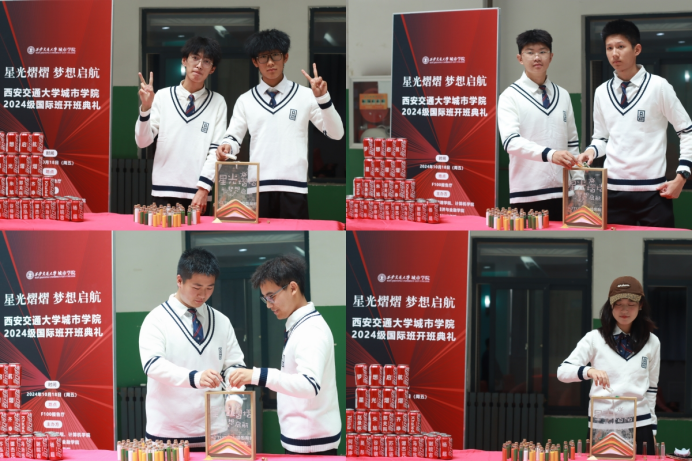 在活动第二个环节,学校领导为2024级国际班每位同学颁发定制伴手礼。接着,同学们在“星光熠熠,梦想启航”的许愿相框中,倒入五彩斑斓的流沙,流动的色彩,流动的希望,寓意对未来的美好憧憬。活动最后,大家合影留念,一起携手同行,扬帆启航!