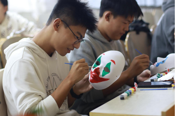活动开始前,同学们用气球、彩灯和横幅装点教室。在音乐的开场下,同学们进行了面具绘制、才艺展示等。