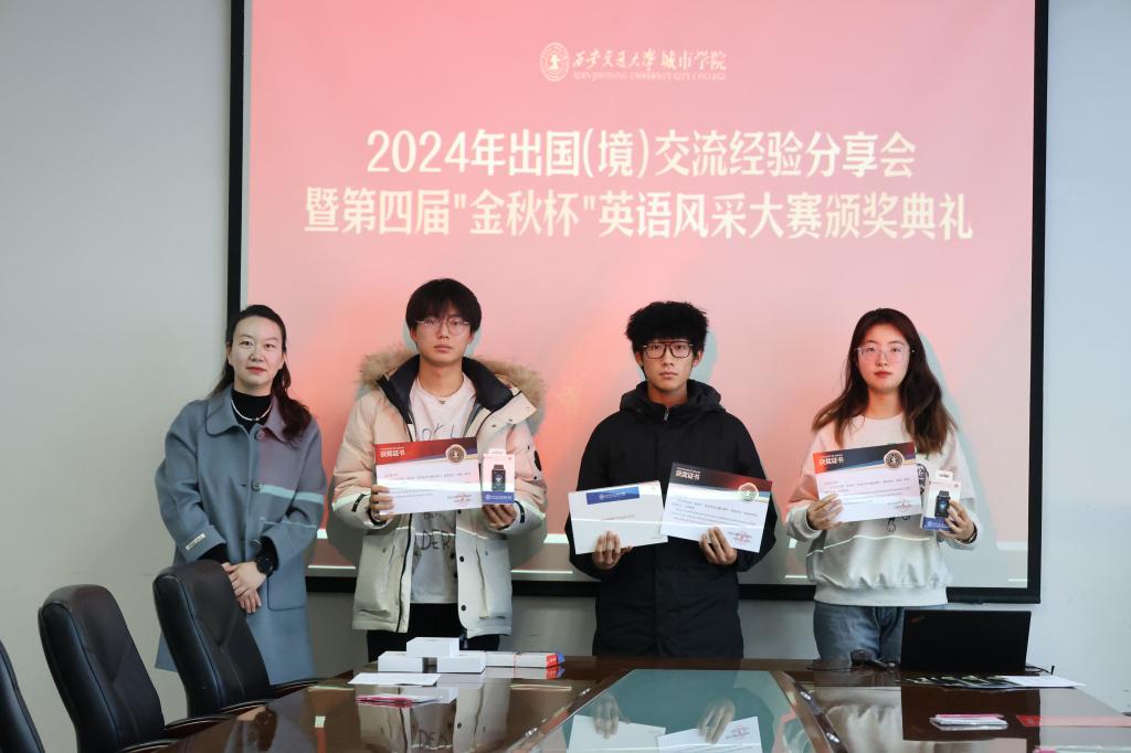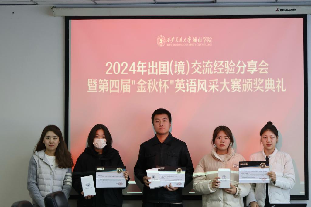 随后,与会老师们为第四届“金秋杯”英语风采大赛中脱颖而出的同学们颁发了荣誉证书及精美礼品。此次比赛旨在激发全校学生对英语学习的热情与兴趣,自比赛启动以来,共吸引了来自经金学院、管理学院、计算机学院、外国语学院、艺术学院、传媒学院、电信学院和护理学院等多个学院的近百篇精彩纷呈的作品。