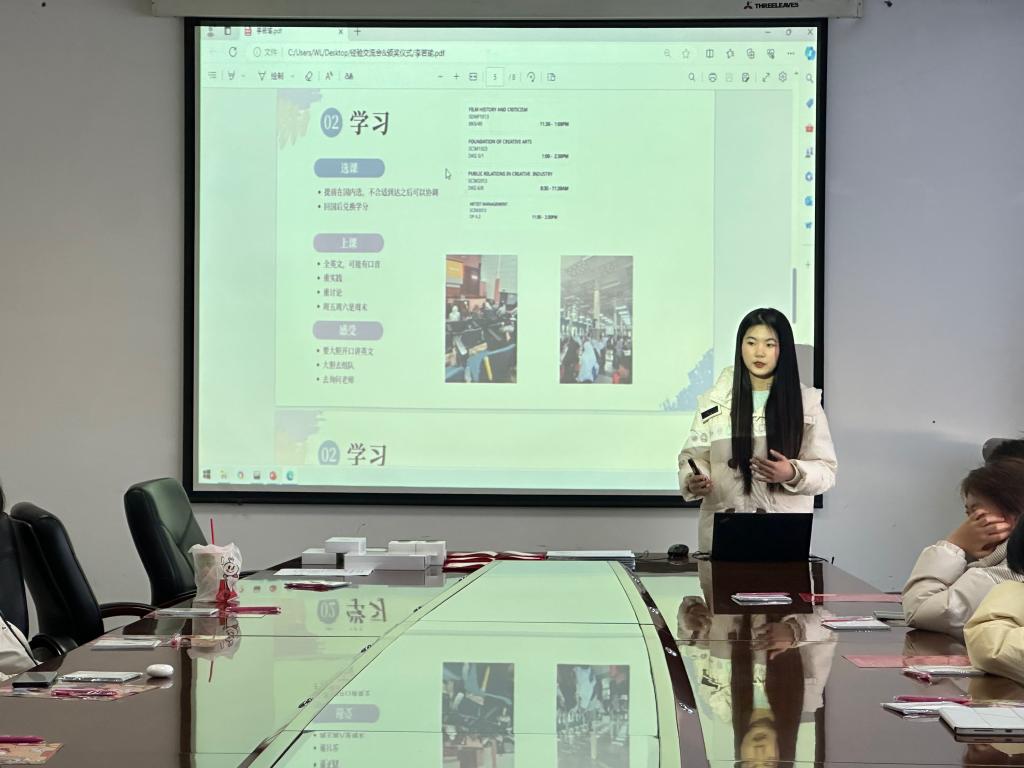 分享环节中,韩国世宗大学一学期交流生王佩玟、马来西亚学期交流生李若瑜、剑桥大学暑期交流生张品言三位同学从行前准备的点滴细节、选课学习的策略智慧、人际沟通的桥梁搭建、饮食住宿的独到体验,以及留学期间的注意事项等多个维度,为在座的同学们描绘了一幅生动而实用的交流生活画卷。