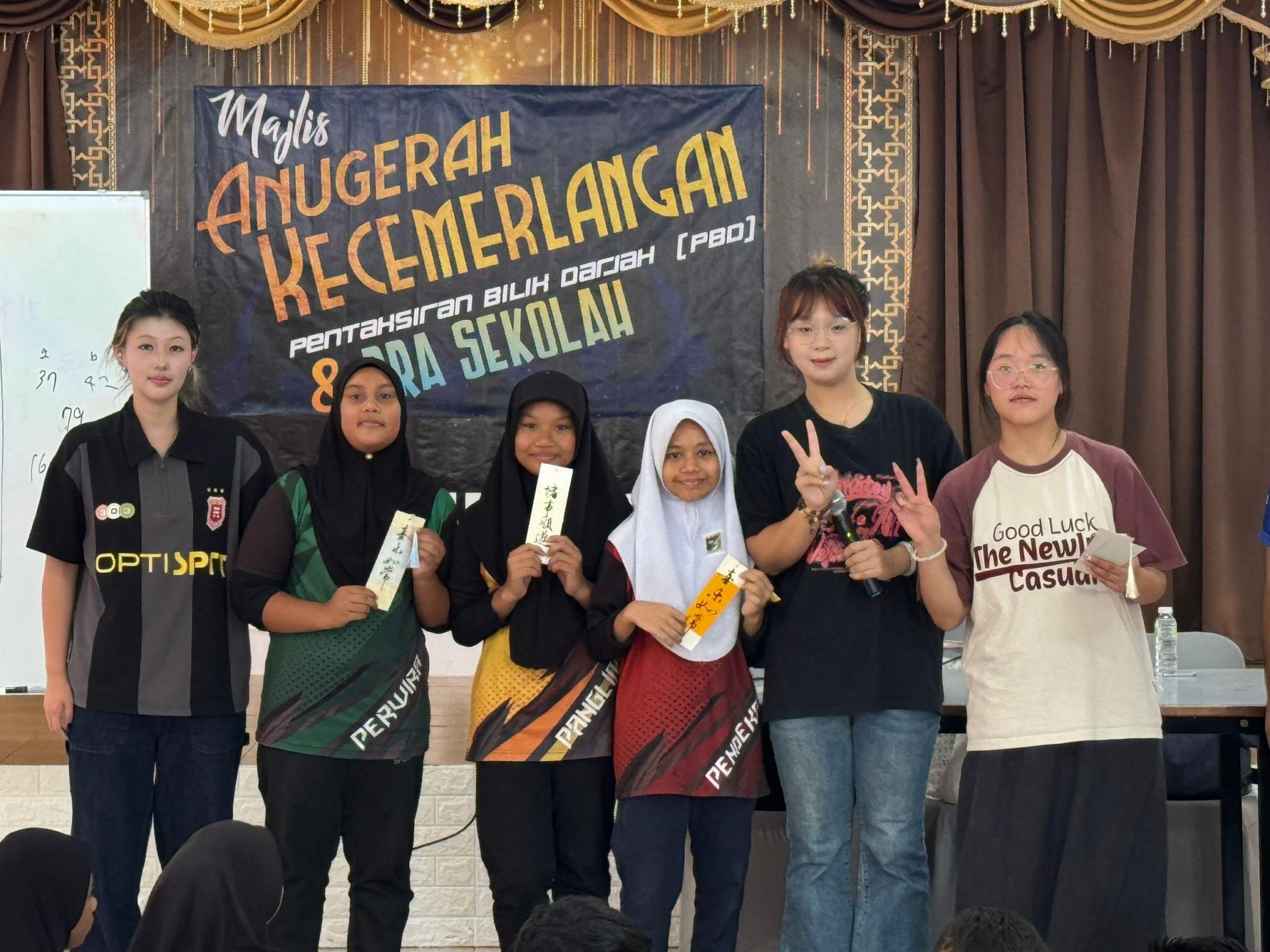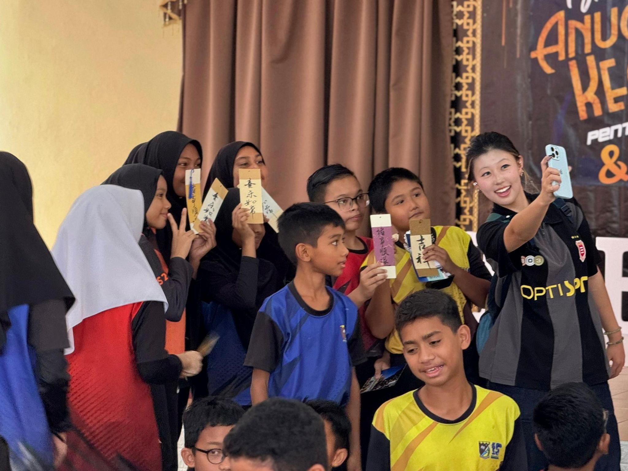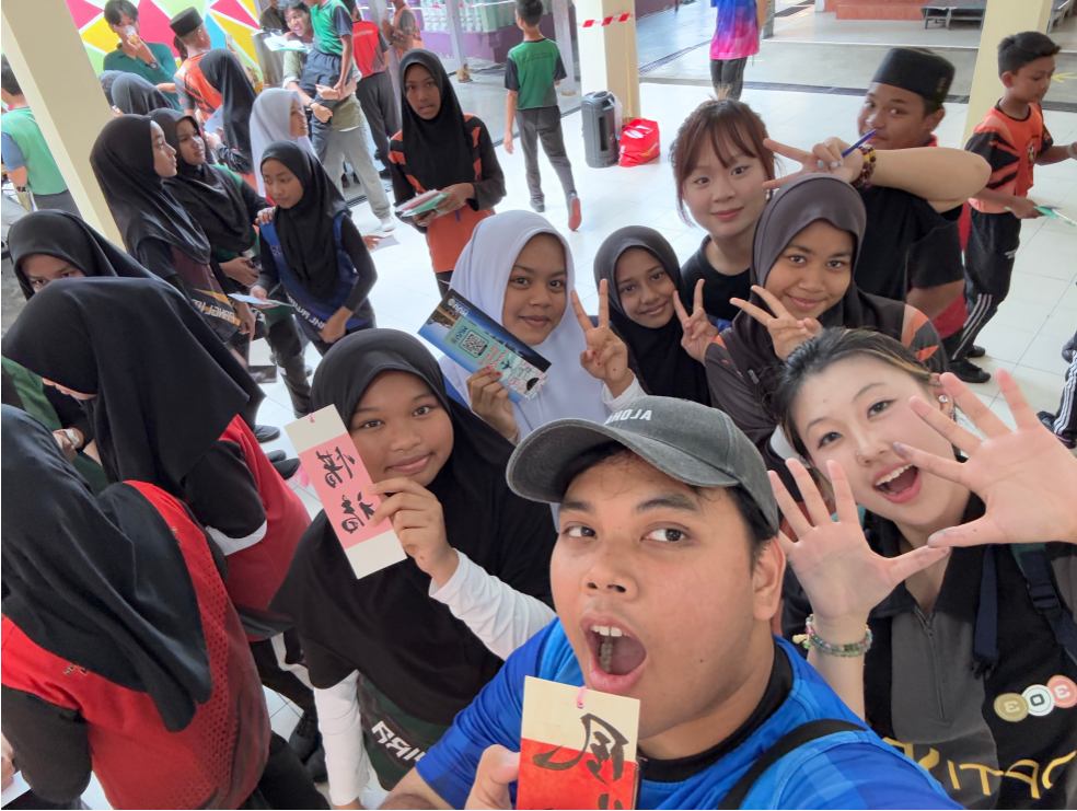 在活动的最后一天,杜子瑶与万远带着对中国文化的热爱与自豪,前往Teluk Bahang小学进行文化交流活动。她们精心准备了书法教学课程,向马来西亚学生展示了中国书法的独特魅力。在课堂上,她们耐心地讲解书法的历史渊源、基本笔画和书写技巧,学生们对中国书法产生了浓厚的兴趣,纷纷尝试用毛笔书写汉字。随着课程的深入,当地学生对中国书法产生了愈发浓厚的兴趣。他们不仅积极向老师提问,还主动要求书写更多的汉字。在书签上,他们一笔一划地写下自己的名字,或是寓意吉祥的成语,每一次落笔都凝聚着对汉字之美的赞叹与向往。此次文化交流活动,不仅加深了中外学生之间的友谊与理解,更让中国书法这一中华文化的瑰宝,在异国他乡得到了更好的传承与发扬。两位学生表示,将把这次书法体验视为一次宝贵的人生经历,并愿意在未来的日子里,继续探索与传承中华文化。