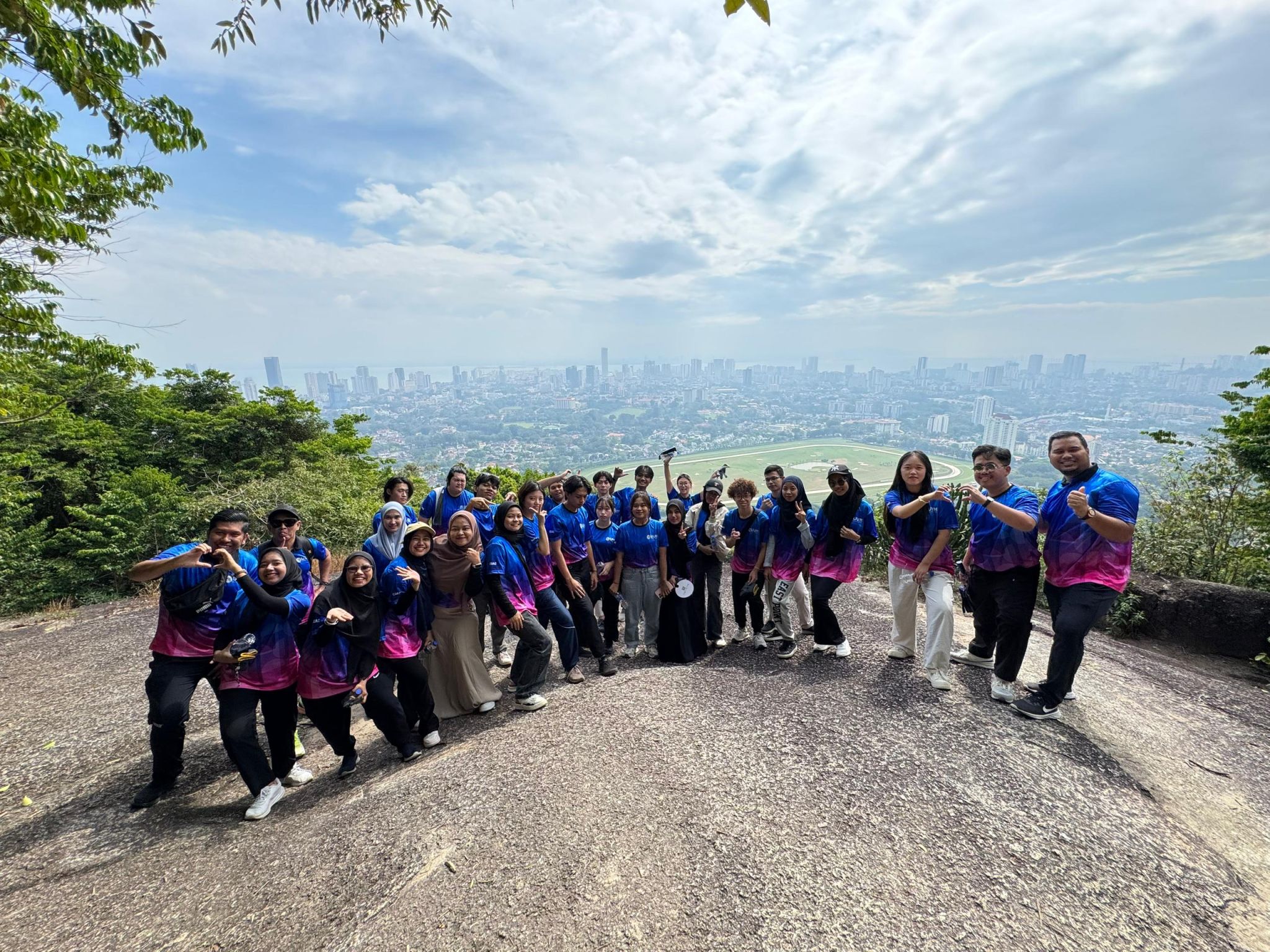 次日,两位交换生身着统一的环保服装,踏上了“Astro Hill”的环保徒步之旅。他们沿着蜿蜒的山路前行,一边欣赏山间清新的空气和美丽的自然风光,一边捡拾沿途的垃圾。在徒步过程中,她们深刻体会到了保护环境的重要性,也感受到了团队合作的力量。威尼斯官网两位同学与来自世界各地的交换生一起努力共同为守护这片美丽的土地贡献自己的力量。此外,她们还体验了蜡染绘画这一马来西亚传统文化艺术,并在槟城山上欣赏了雨后的云雾缭绕美景。这次徒步之旅不仅是一次对自然的亲近与探索,更是一次心灵的洗礼与成长。