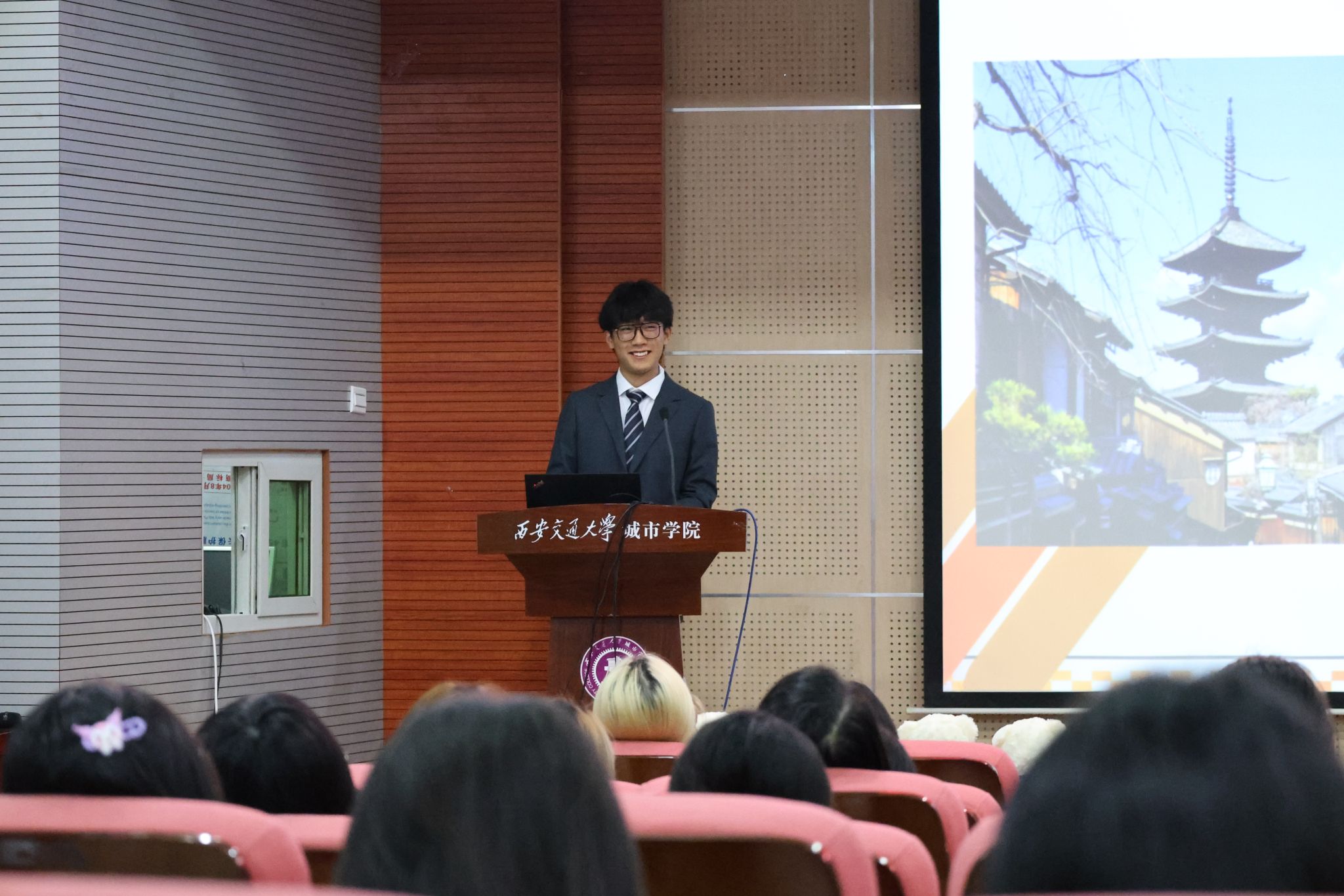 在境外课程分享环节,经济与管理学院杜子瑶分享了在国外学习的点滴,还讲述了自己参与“筑·愿”慈善晚会、迎新晚会表演以及与马来西亚理科大学学生进行交流互动的难忘经历。杜子瑶的精彩分享让在场师生感受到了她的充实生活和积极态度。2022级经济与管理学院的万远不仅提到了马来西亚的多元文化,还着重介绍了北方大学独特的森林校园环境,让在场师生仿佛身临其境。传媒学院李晨珺带来了她在韩国世宗大学的交流体验。她以优异的成绩和丰富的社会实践经历,赢得了在场师生的阵阵掌声。经济与管理学院安俊宇为大家带来了他在日本京都大学等三校联合研学经历。他详细描述了这三所名校的学术氛围和校园环境。安俊宇同学的分享让在场师生对日本的高等教育有了更深入的了解。