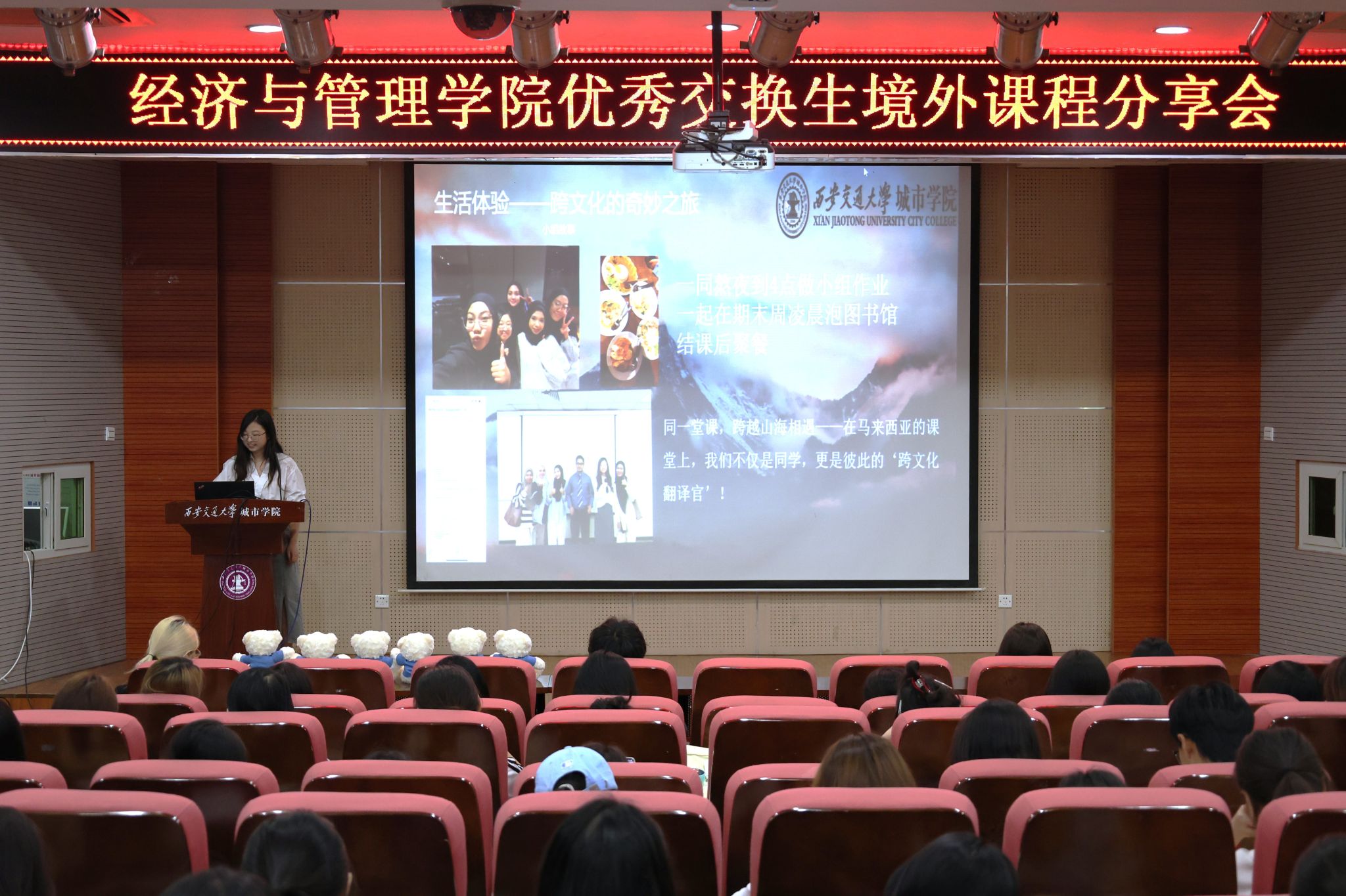 为了让同学们深入了解学校官方校际合作交流平台,感受优秀学长和学姐的国外学习体验,4月9日中午,行政人事部国际合作交流处在F100举办2024-2025学年优秀交流生境外课程分享会。经济与管理学院大一、大二学生以及全校对国际交流感兴趣的同学参加会议。