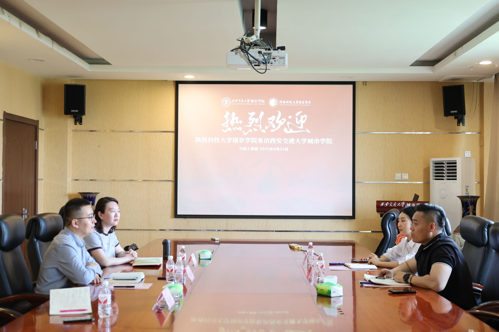 4月23日下午,陕西科技大学镐京学院国际教育学院院长梁逸群、副院长王倩一行来校考察交流。校长助理、行政人事部部长姬志国,行政人事部国际合作与交流处孙晓、冯欣在行政楼608会议室接待来宾,双方就"一带一路"教育行动背景下的国际合作项目开发与创新管理进行深入交流。