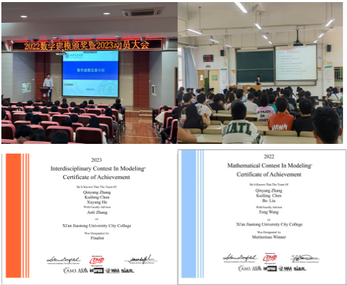 强化竞赛管理,推动创新人才培养。以数学竞赛、数学建模竞赛为抓手,强化竞赛组织管理。比如将数学建模融入日常教学,通过开设建模选修课提升学生的建模能力;召开建模动员大会、各类建模讲座、建模经验分享会等积极动员学生参加各类学科竞赛,以赛促学,以赛促教,推动创新人才培养,成效显著。