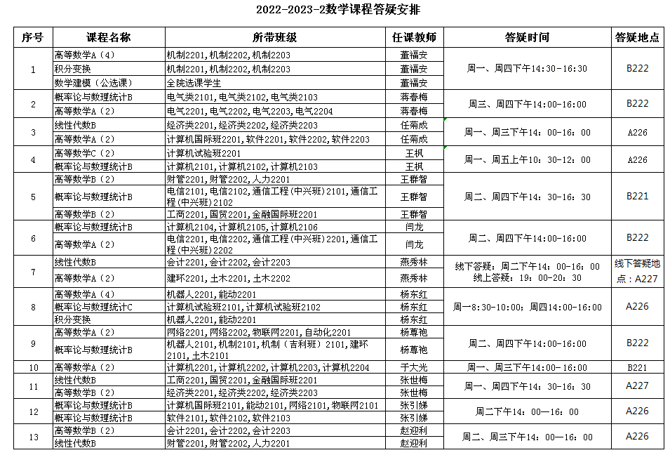 1.开学初:公布各课程答疑方式,建立过程教学台账,组建任课教师与辅导员、班主任联系小组,畅通信息沟通渠道,多方了解学生学业情况。
