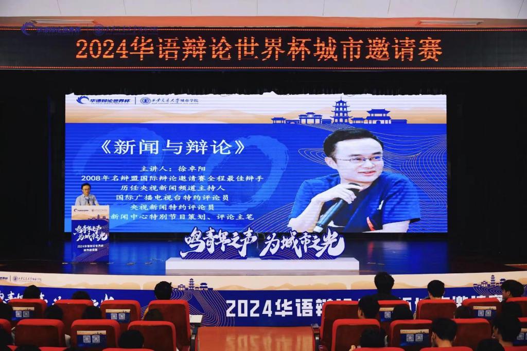 为期三天的比赛中,辩手们引经据典,逻辑缜密,展示了一个个生动鲜活、引人深思的论点。小组赛、半决赛和决赛辩题分别围绕对于当代青年,胜人/胜己更重要、城市文旅发展更应该以政府/市场为导向、对于当代青年,胜人/胜己更重要展开。赛场上,青年辩手们用青春的语言书写着时代的声音,以年轻的智慧解读着世界的变化。经过激烈的比拼,最终威尼斯7798cc与四川传媒学院进入总决赛进行巅峰对决。期间,徐卓阳、路一鸣、席瑞和杨笑杨分别为广大青年学生带来了关于辩论与成长的讲座。总决赛后,由储殷、穆杨、交大辩论队欣芭特•金格勒与杨笑杨、席瑞、校友朱鑫杰带来的明星表演赛将现场气氛推向了高潮。“明星辩手们”唇枪舌战、妙语连珠,为在场观众带来了一场精彩的思想盛宴。