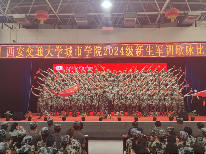 9月3日下午,军训团在大学生活动中心组织开展“歌唱祖国,奋进青春”歌咏比赛。党委书记张爱萍、全体教官、指导员及参训学员参加本次比赛,军训团营职以上干部担任评委。本次比赛由周林欣同学和成顾伟同学主持。