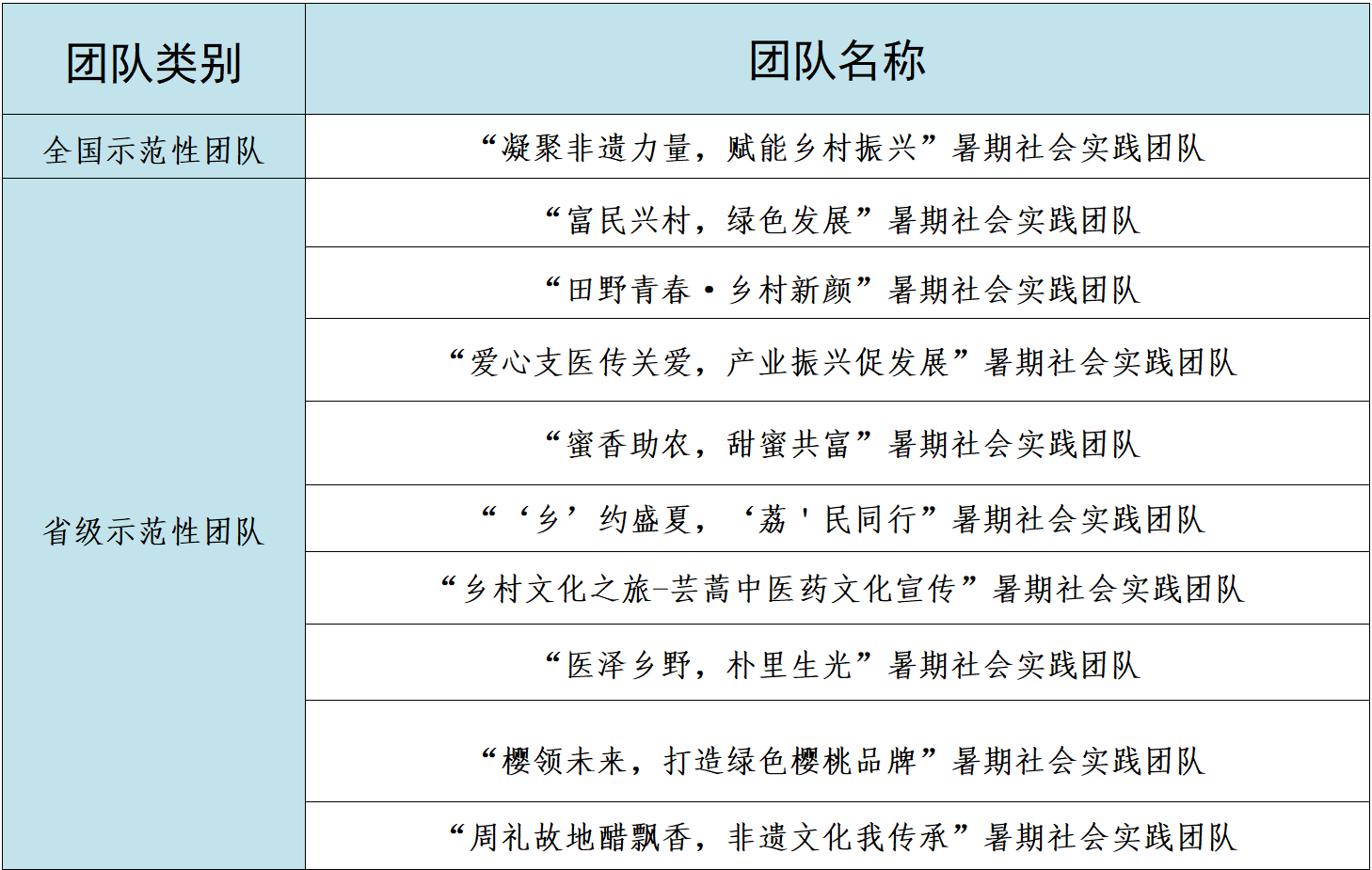 为深入学习贯彻习近平总书记关于“三农”工作的重要论述,引领青年厚植爱农情怀、练就兴农本领,在乡村振兴的大舞台上建功立业,学校团委统筹谋划、精心组织、广泛宣传,动员学子依托自身专业积极申报2024年全国大学生“乡村振兴·青春笃行”计划,共组建10支队伍,建立实践基地4个。其中,“凝聚非遗力量,赋能乡村振兴”暑期社会实践团入选2024年全国大学生“乡村振兴·青春笃行”计划全国示范性团队,“富民兴村,绿色发展”暑期实践团等9个实践团队入选省级示范团队。