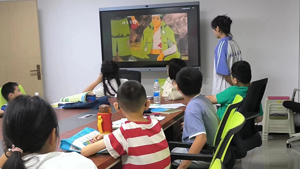 此外,志愿者们还借助《一个苹果》的视频素材,进一步加深了孩子们对革命先烈的崇敬之情。视频中的场景与细节,让孩子们仿佛穿越时空,亲眼见证了革命先辈们的英勇事迹,从而更加深刻地理解了新中国成立的艰辛与不易。