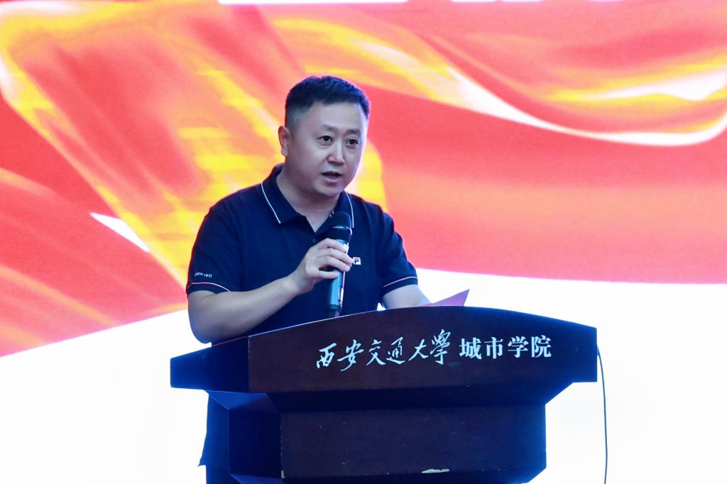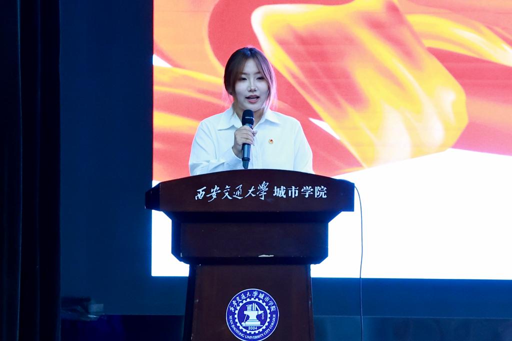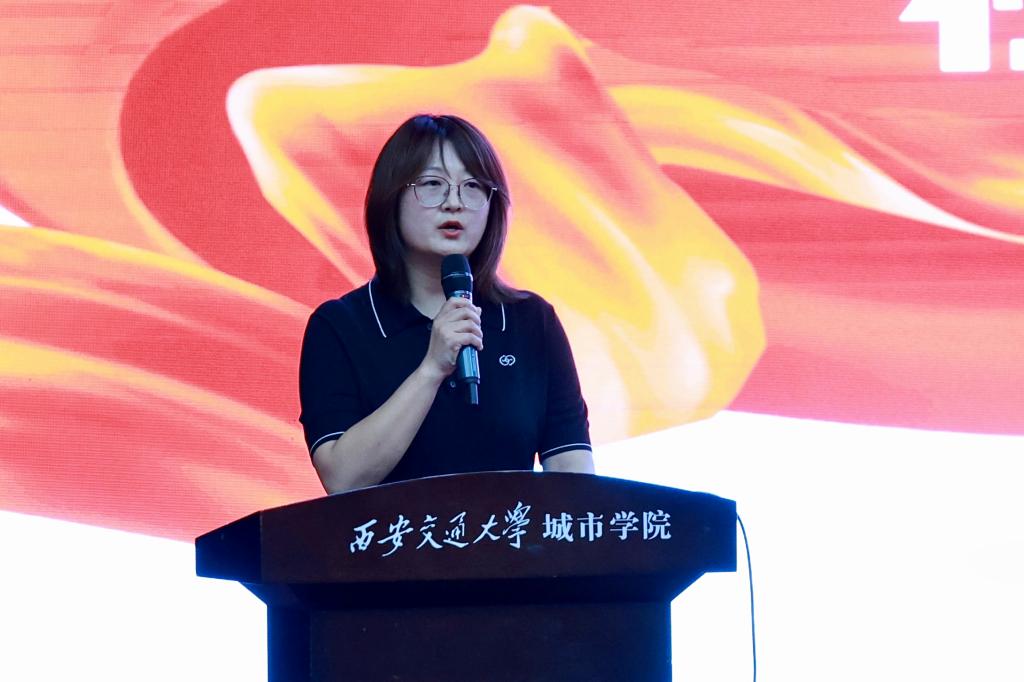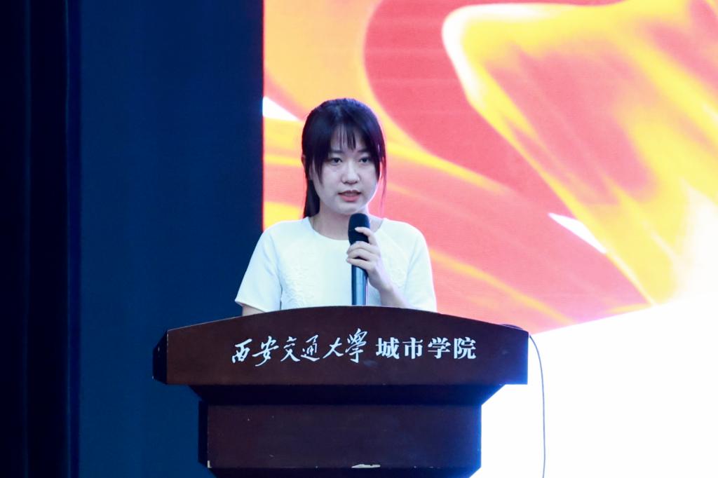 出征仪式伴随着嘹亮的团歌声和国旗护卫队护旗手铿锵有力的步伐声中拉开序幕。仪式上,团委书记茹静就今年社会实践整体情况介绍及下一步安排部署进行汇报。截至目前,威尼斯官网组织实践团队近150支,参与人数达到千余人次,较上一年度同期增长队伍数量近40支,参与人数同期增长400余人并已成功申请全国社会实践志愿服务队伍4支。实践队指导老师代表高荣就自身参与社会实践活动的经历讲述了她的“三下乡”故事,并呼吁各实践队队员们要积极加入实践活动中去,把实践与专业教育有机结合,真干实干,勤于思考,多学多做,使实践活动真正成为新时代青年的“体验之旅”“求知之旅”和“收获之旅”。随后,实践队员代表刘宣彤同学从自身出发,与各位实践队员分享了选题、组队、打磨项目等亲身感受,并表示在接下来的社会实践活动中,一定会身体力行地去诠释城院青年的担当,书写绚丽青春篇章。