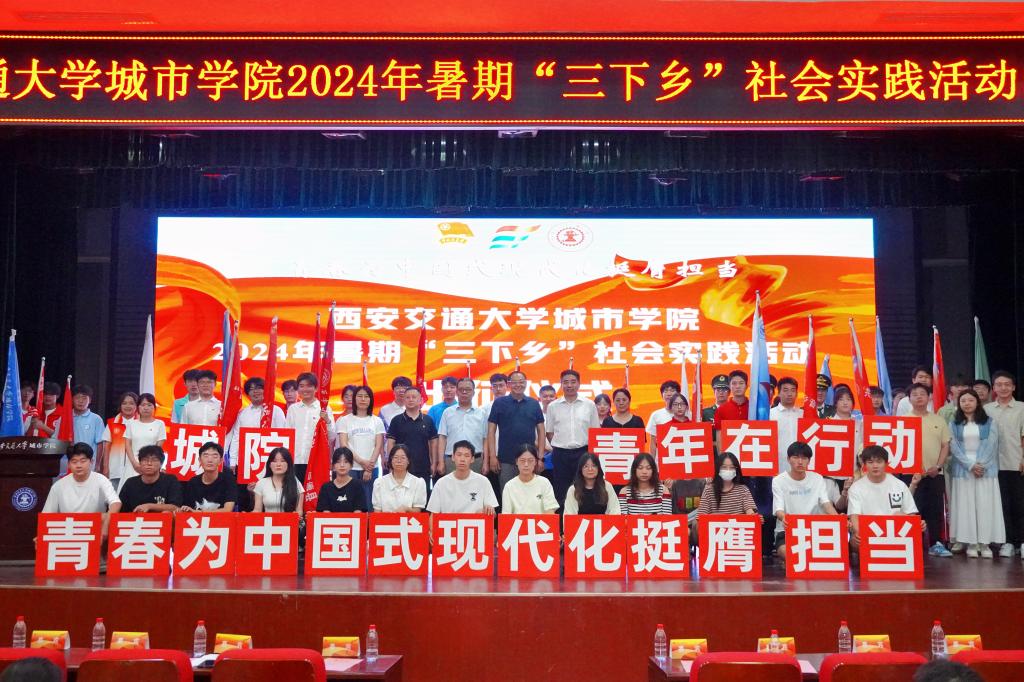 2024年暑期“三下乡”社会实践活动出征的号角在“请老师放心!请城院放心!请祖国放心”的铮铮誓言中,在全场飘扬的实践队旗下响起!愿城院青年在接下来的实践旅途中,成为有理想、敢担当、能吃苦、肯奋斗的新时代好青年,让青春在为中国式现代化挺膺担当中焕发绚丽光彩!