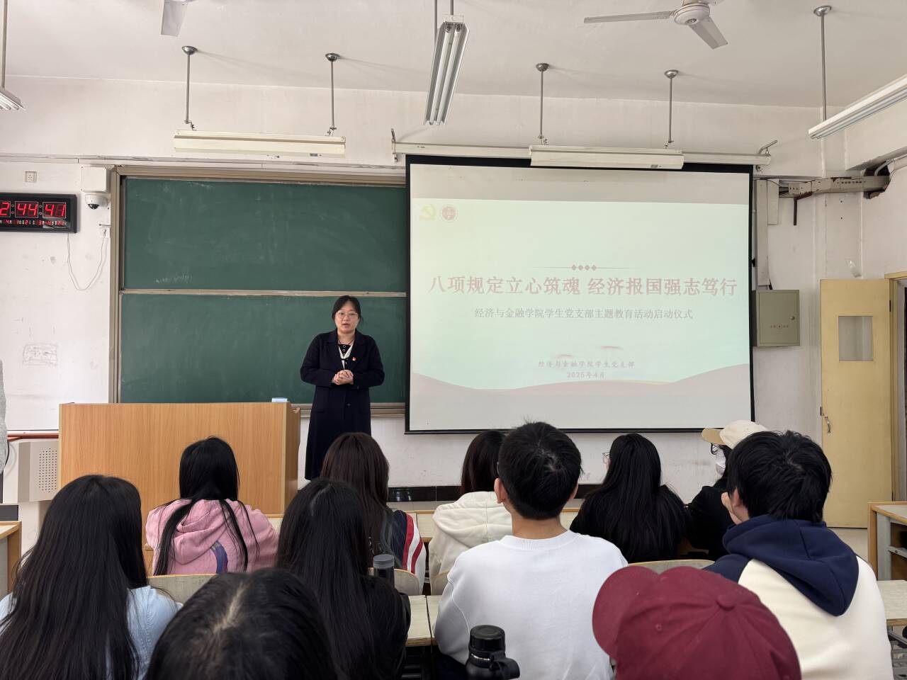 经济与管理学院学生第三党支部于4月1日开展中央八项规定精神学习教育。经济与管理学院学生第三党支部书记廉宇婷、组织委员杨静怡、宣传委员张进及全体学生党员共同参与了学习。
